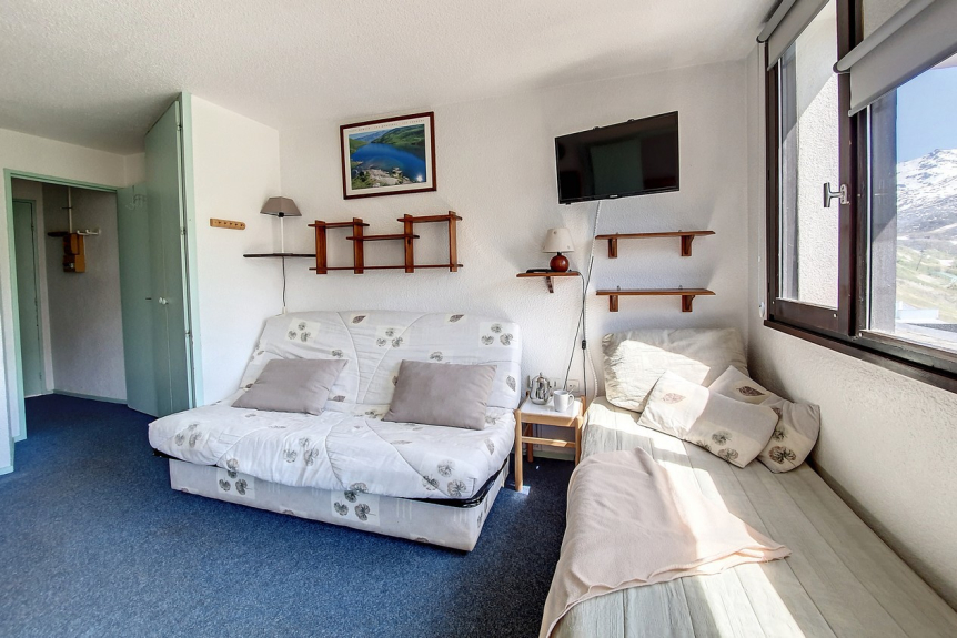 Soggiorno : 1 divano letto per 2 persone (130 cm). Dotato di una televisione.