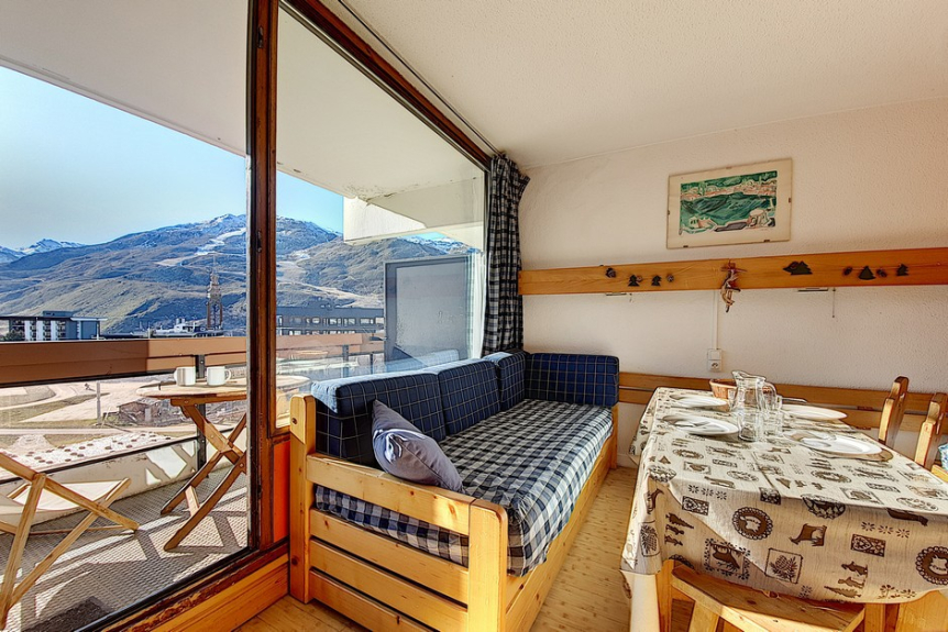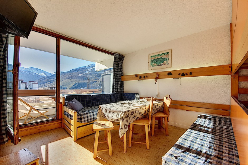 Monolocale di 24m² per 4 persone, situato al 5° piano con ascensore e con un balcone esposto a sud (vista sulle piste).