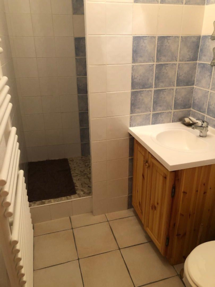 - Un bagno con doccia, lavatrice e servizi igienici,