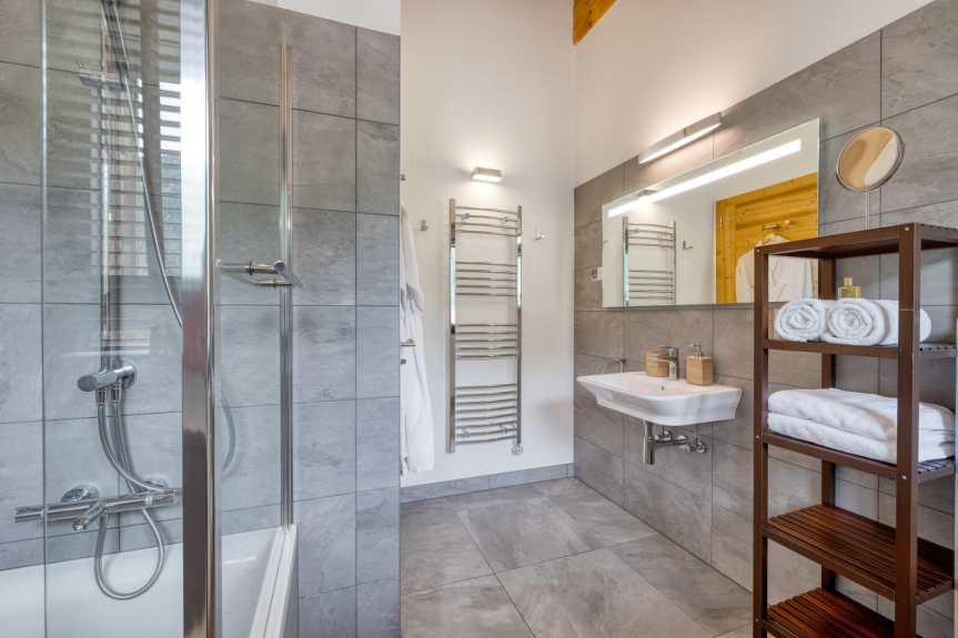 Soggiornando nel nostro Chalet Paradis Blanc Morzine, potrete godere di quasi 300 m² con 6 camere doppie con bagno privato e un dormitorio da 6 letti, nonché di un giardino completamente attrezzato (mobili da giardino installati solo in estate) con Clairazur Swim Spa e Timber'In Sauna.