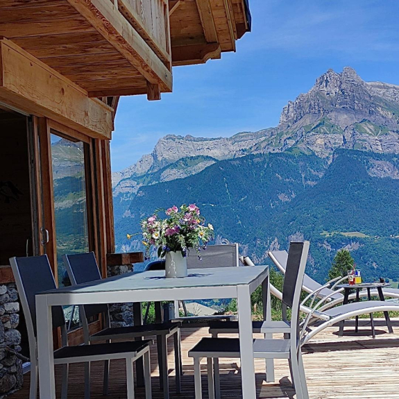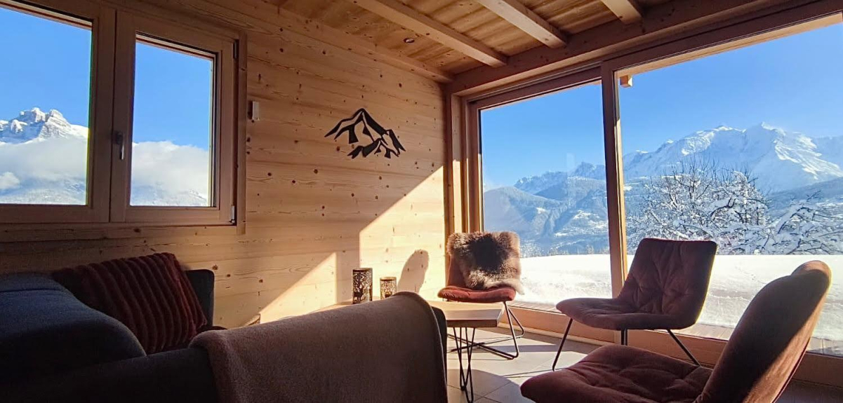 Nu chalet (primo affitto estate 2022) classificato 3 stelle con vista eccezionale e panoramica sulla catena del Monte Bianco, la catena del Fiz e la catena degli Aravis.