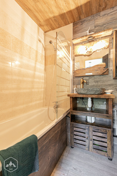 Questo appartamento, arredato con raffinatezza in uno spirito di montagna, comprende :