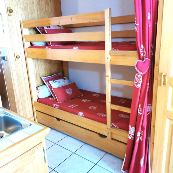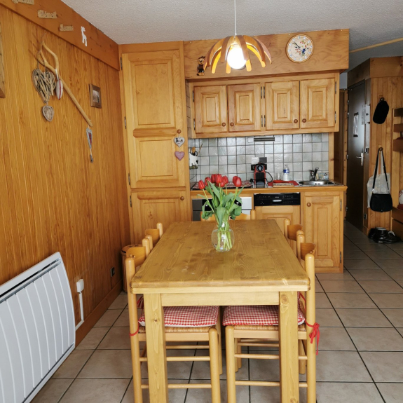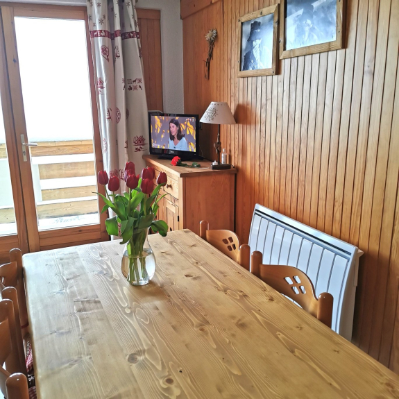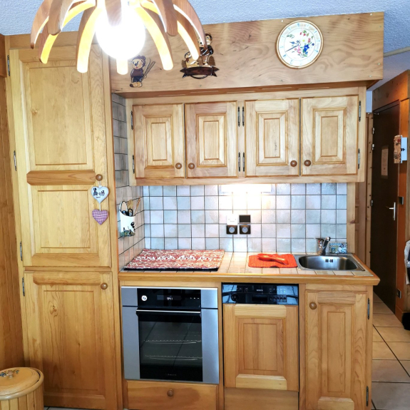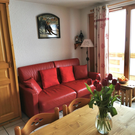 Appartamento di 38 m2, classificato di categoria 3*, esposto a sud con un balcone con una magnifica vista sulla località e sulle piste, tranquillo, confortevole e completamente attrezzato: