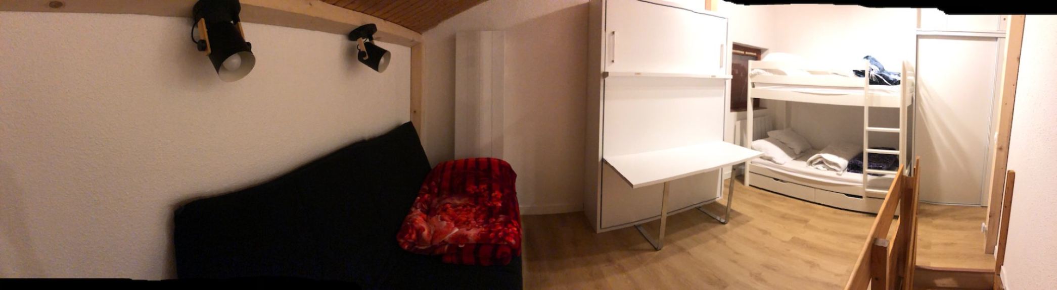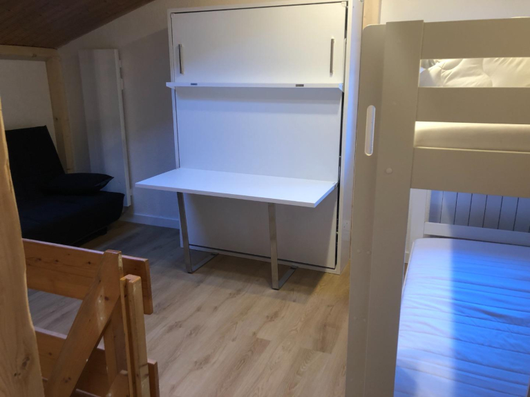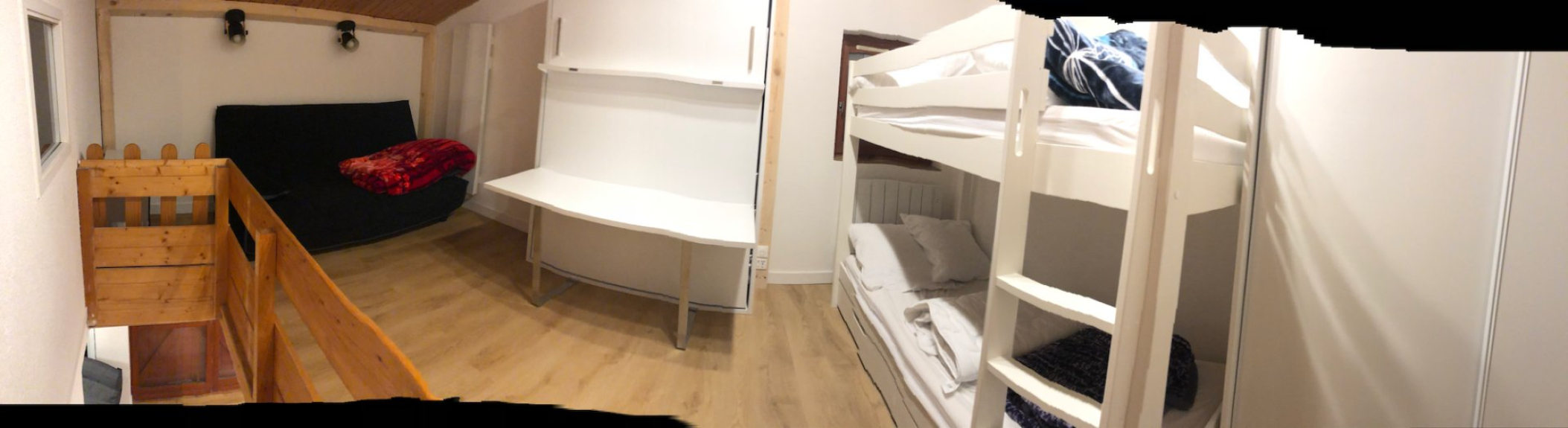 Camera da letto 2: un letto a castello per 2 persone (90x200), 1 divano letto convertibile in letto 140x200 e 1 letto estraibile (140x190).