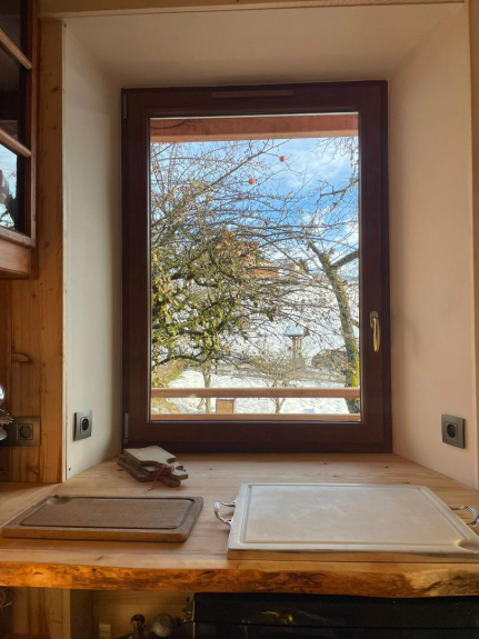 Abbiamo progettato questa casa in modo che le famiglie o gli amici possano godersi le vacanze nella cucina di una volta, che si apre sulla sala da pranzo, come nella tradizione di montagna, dove gli ospiti possono riunirsi intorno al grande tavolo per momenti di calore, mentre ognuno ha la propria stanza per i momenti di calma.