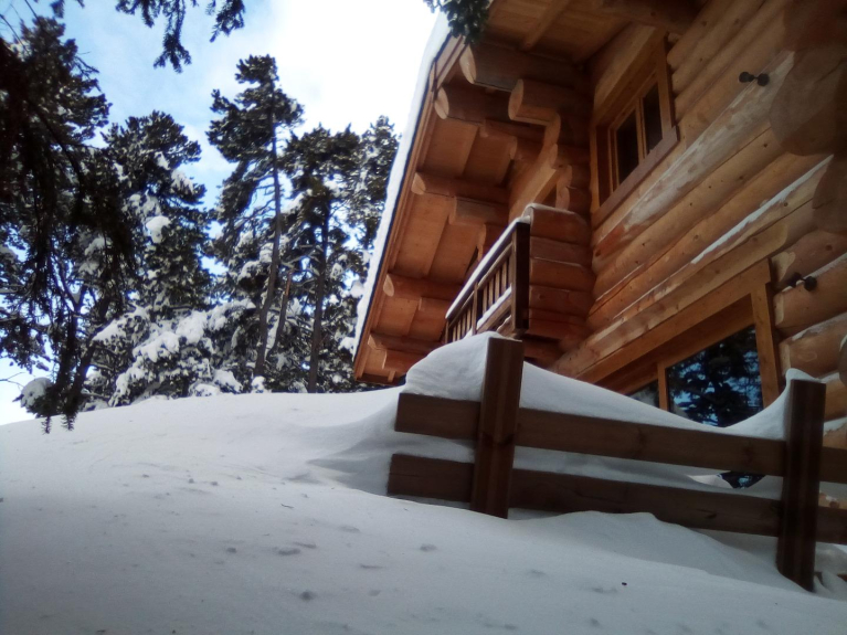 Nu chalet di alta gamma in tronchi massicci (fustes), superficie 270 m2, 14-16 persone (capacità 18 max).