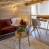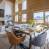 Il soggiorno a pianta aperta è particolarmente invitante, con due grandi e comodi divani disposti intorno al camino e alla televisione. Nello stesso spazio si trovano un bel tavolo da pranzo e una cucina, compatta ma dotata di tutto il necessario per preparare i pasti. L'intera stanza è inondata di luce naturale grazie a due livelli di finestre e a una grande porta-finestra che si apre sul balcone.
