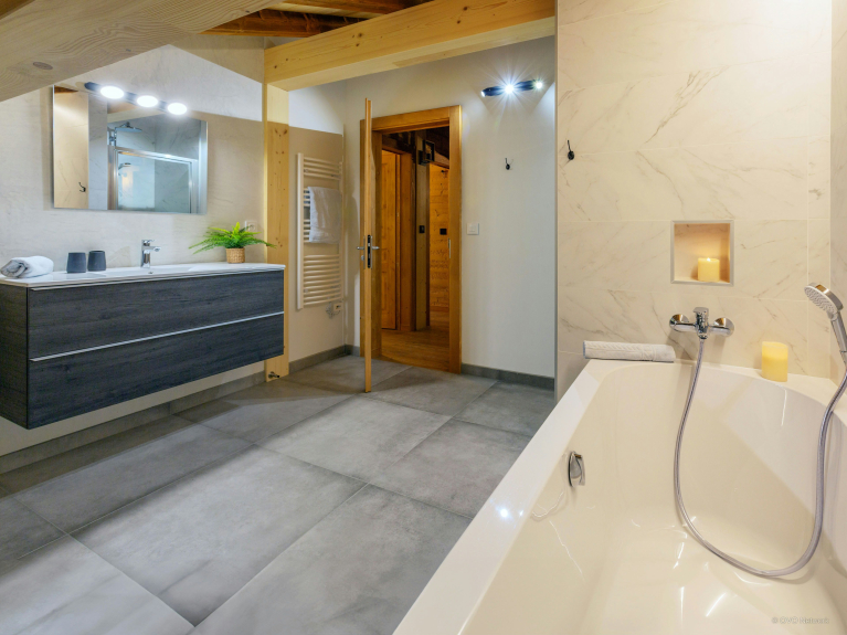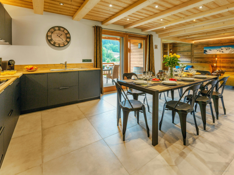 Ci piace particolarmente l'ampio soggiorno, che si apre su un balcone con una splendida vista sulle montagne. Anche tre delle quattro camere da letto hanno accesso al balcone, così potrete iniziare la giornata con una boccata d'aria alpina!