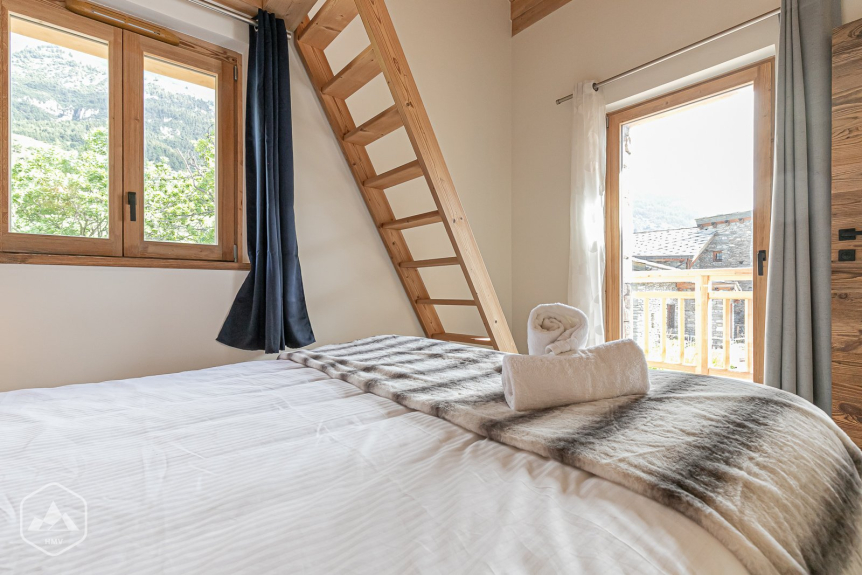 Appartamento per 6 persone in un autentico chalet savoiardo nella frazione di Les Champs, tra Lanslebourg e Lanslevillard. Grande terrazza esposta a sud con vista panoramica.