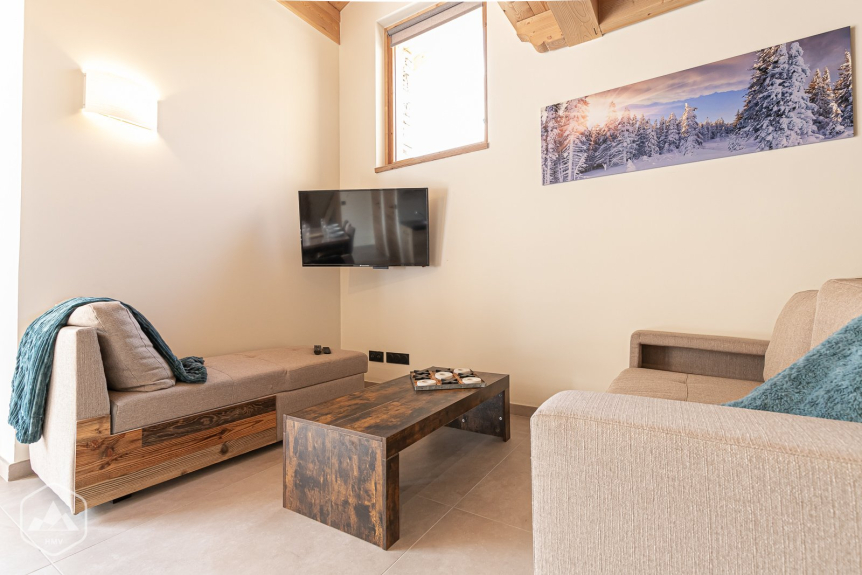- Ampia terrazza esposta a est con vista sulle piste da sci e sulle montagne circostanti