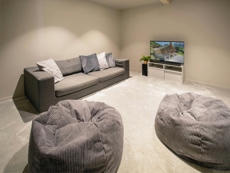 L'alloggio si trova principalmente al primo piano dell'edificio. Ma il seminterrato è un vero punto di forza, con deposito sci, home cinema e sauna. Al termine di una giornata sulle piste, potrete togliervi l'attrezzatura da sci e rilassarvi un po' nella sauna prima di cena. Dopo cena, recatevi al cinema per guardare un film insieme.