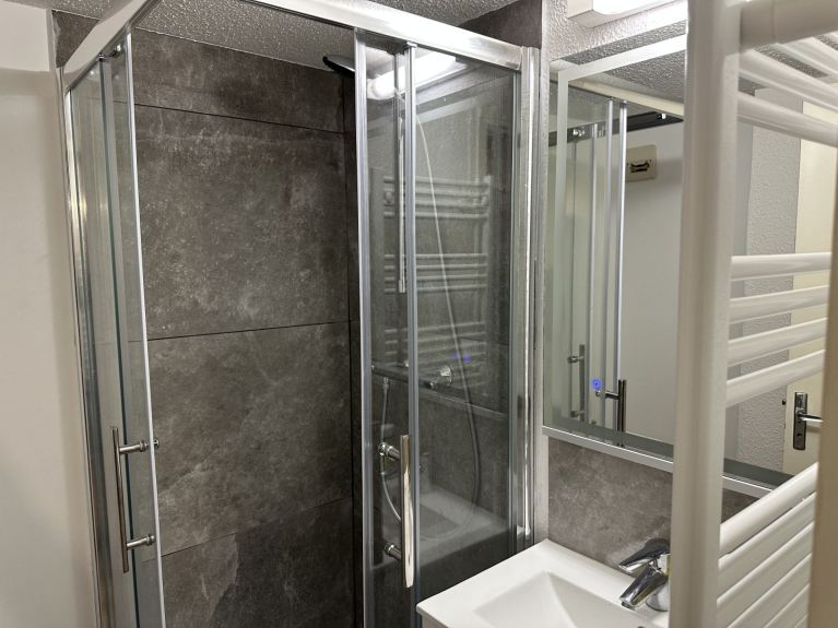 Trilocale per 8 persone, 47 m2, al 2° piano di fronte alle piste, con balcone.