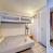 Soggiorno con letto matrimoniale e letto a castello singolo. Televisione.