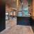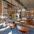 Le grandi porte-finestre inondano la stanza di luce naturale e il caminetto centrale garantisce un'atmosfera accogliente per tutto l'inverno. La moderna cucina si trova sul retro, separata dal soggiorno da un semplice bancone.