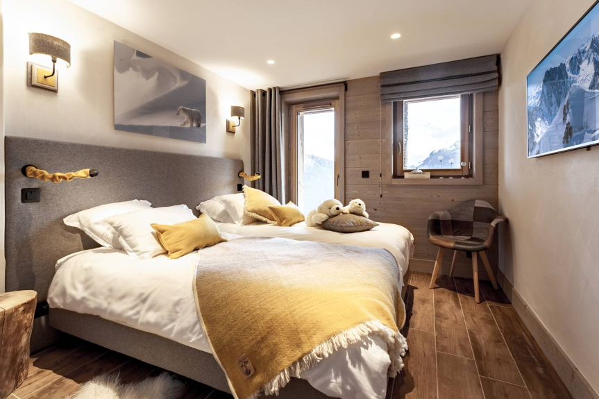 Venite a trascorrere le vostre vacanze con la famiglia o con gli amici nello splendido chalet di alta gamma "L'ours de la Rosière" per 12-14 persone, classificato 5*, completamente adattato per le PMR e situato in posizione ideale ai piedi delle piste e dei negozi di Les Eucherts a La Rosière. Le camere sono interamente decorate da Filature Arpin e presentano opere di artisti locali. Godetevi l'eccezionale vista panoramica a sud sulla valle dell'Alta Tarentaise dalla vasca idromassaggio. Per i vostri momenti di relax, sono a vostra disposizione una sauna, una sala giochi con calcio balilla e una cantina. Possiamo aiutarvi con i trasferimenti aeroportuali, le prenotazioni di babysitter e il catering a domicilio.