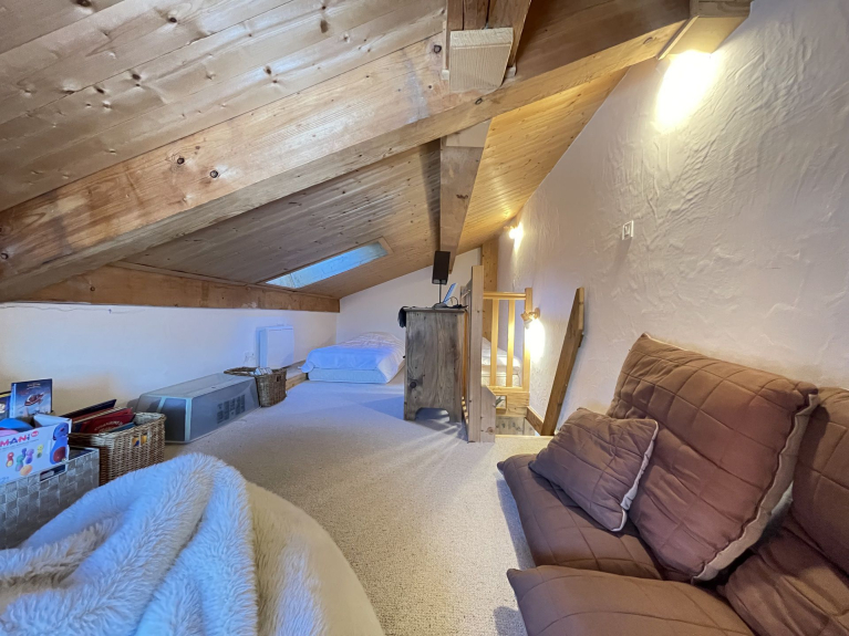 - Soppalco con televisione, area giochi e zona notte con due letti per bambini.