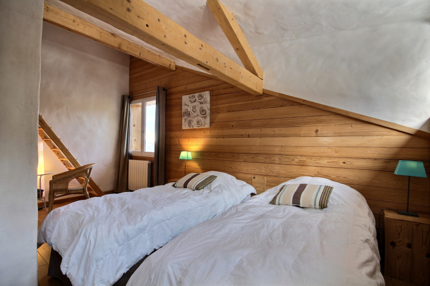 Camera da letto 2: 2 letti singoli (90 x 200 cm) che possono essere trasformati in un letto matrimoniale (180 x 200 cm)