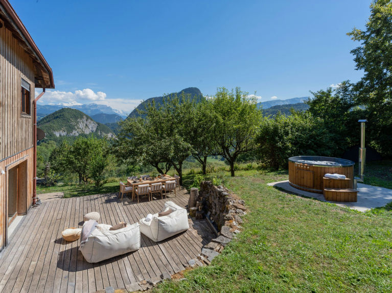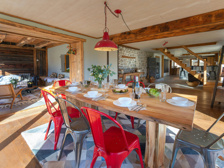 L'accurata ristrutturazione di questa ex casa colonica ha creato un mix perfetto di fascino tradizionale e comfort moderno. Numerose finestre inondano tutti gli ambienti di luce naturale e offrono sontuose viste sulle montagne circostanti.