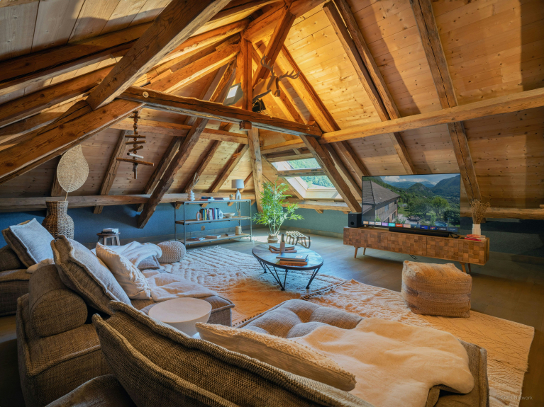 Con ben 3 aree salotto e una sala TV sotto il tetto, ce n'è per tutti i gusti. La cucina è dotata di tutti gli elettrodomestici e gli utensili necessari e si può scegliere di consumare i pasti intorno al tavolo da pranzo interno o sulla terrazza paesaggistica.