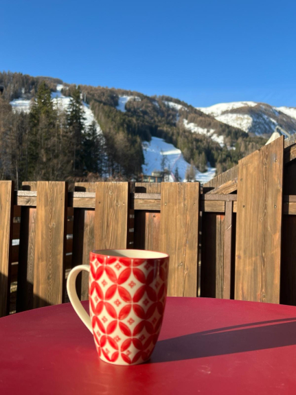 Vista sulle piste e sulle montagne. Terrazza soleggiata tutto il giorno.