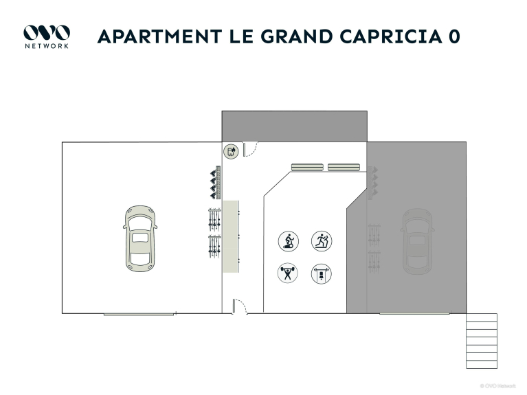 Questo appartamento occupa gli ultimi due piani di un edificio che condivide con Le Petit Capricia. Al piano terra si trovano il garage (per uno o due piccoli veicoli), il deposito sci e la palestra.