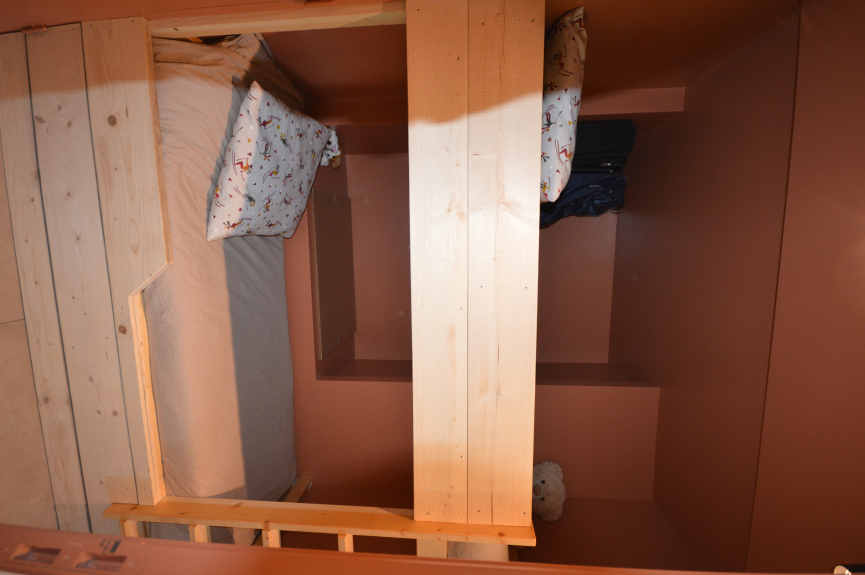 È composto da un ingresso con zona montagna (due letti a castello da 90 cm), con ripostiglio.