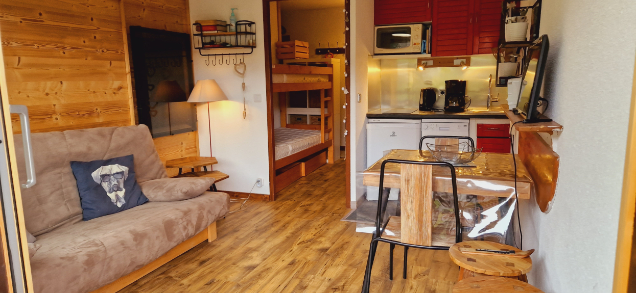 Monolocale molto bello (circa 24 m²) situato nel residence Les Charmettes, vicino alle piste e al centro della località, al 2° piano senza ascensore. Ideale per una famiglia, in posizione tranquilla ma vicino a tutti i servizi.