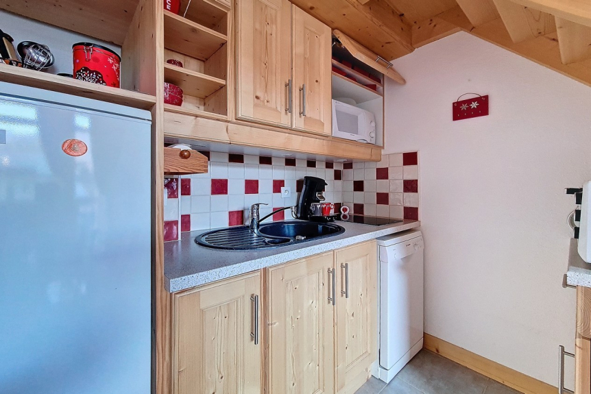 Attraente appartamento bilocale soppalcato di 28 m² per 4 persone. Si trova al 1° piano (senza ascensore) e dispone di un balcone esposto a sud con una bella vista sulla catena montuosa.