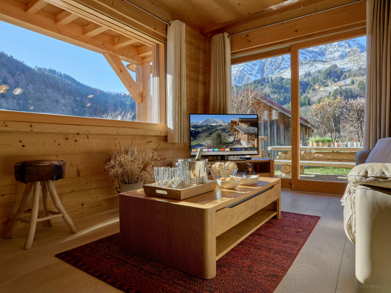 Lo Chalet La Canopée domina una zona periferica di La Giettaz. L'edificio a due piani ha cinque camere da letto e quattro bagni e può ospitare 10 persone.