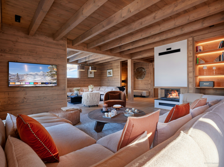 Al piano inferiore, un'area per il tempo libero e il relax comprende un divano, un calcio balilla e un angolo cottura, e conduce a una sala TV separata. Lo chalet dispone anche di una sauna, per un meritato momento di benessere dopo le attività della giornata.