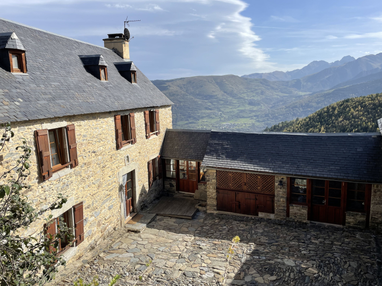 Tranquillamente arretrato rispetto alla strada, questo antico casale di Bigourdane del XVIII e XIX secolo è composto da 3 edifici intorno a un cortile acciottolato, ed è stato restaurato con materiali tradizionali nel rispetto del savoir-faire della Vallée d'Aure. Sarete accolti in una delle sue 2 incantevoli gîtes, ognuna dotata di un elevato livello di comfort.