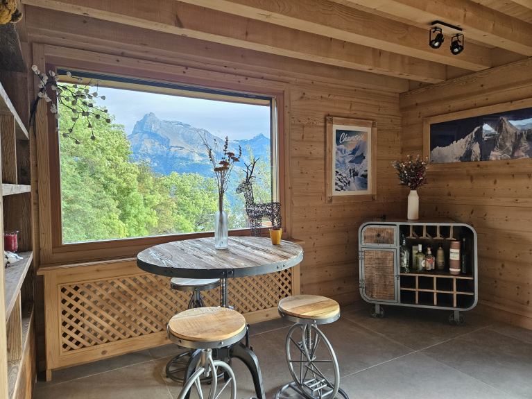 Lo chalet è molto accogliente, arredato di recente e luminoso, con una magnifica vista panoramica sulla catena del Monte Bianco, non trascurata. È anche posizionato in modo da poter vedere le catene del Fiz e dell'Aravis, cosa insolita a Combloux!