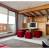 Soggiorno a pianta aperta con 2 divani e TV a schermo piatto.