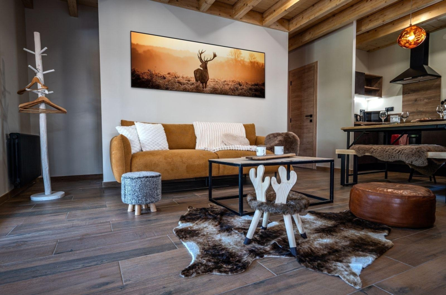 - Soggiorno con stufa a pellet (pellet fornito per tutto il soggiorno) e comodo divano.