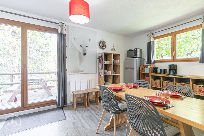 - Cucina completamente attrezzata, che si apre sul soggiorno, con grande frigorifero e congelatore, lavastoviglie, tostapane, bollitore, macchina per il caffè, forno a ventilazione assistita, microonde, set per raclette, crêpe party, piano cottura in vetroceramica, pentola a pressione.