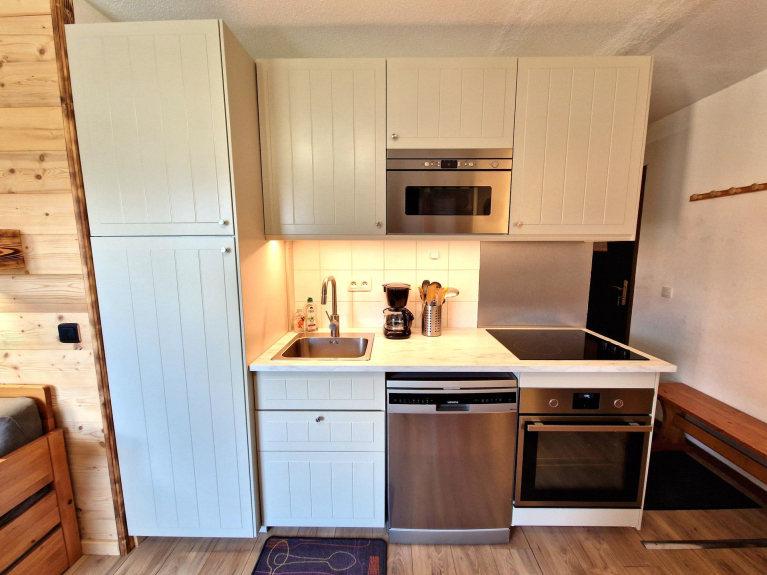 - Angolo cottura con 4 piastre elettriche, frigorifero, lavastoviglie, microonde.