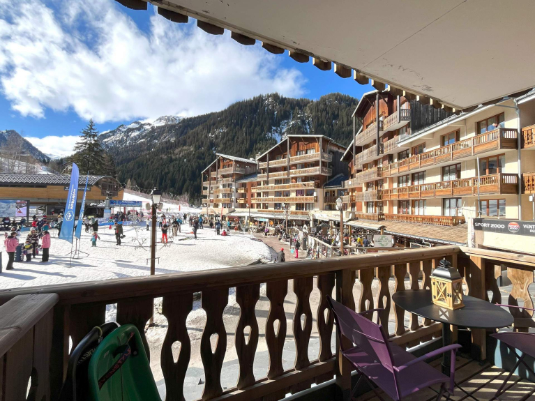 - Balcone esposto a sud con vista sulla piazza principale e sugli impianti di risalita.
