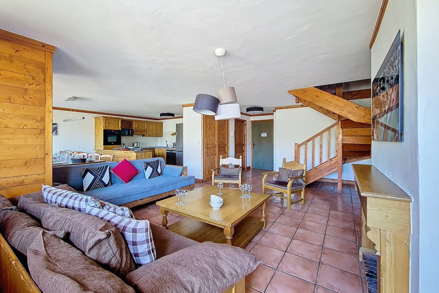 Spazioso appartamento duplex di 101 m² con balcone esposto a sud-ovest che offre una vista eccezionale sulle cime. L'impianto di risalita si trova ai piedi dell'appartamento, che dispone di un ampio armadietto per gli sci con asciugascarponi sulle piste.