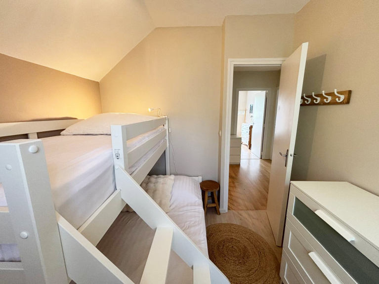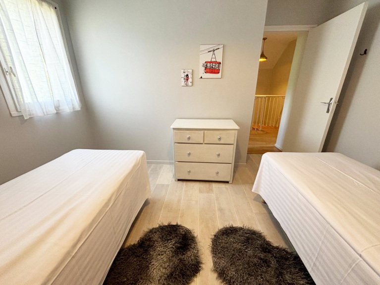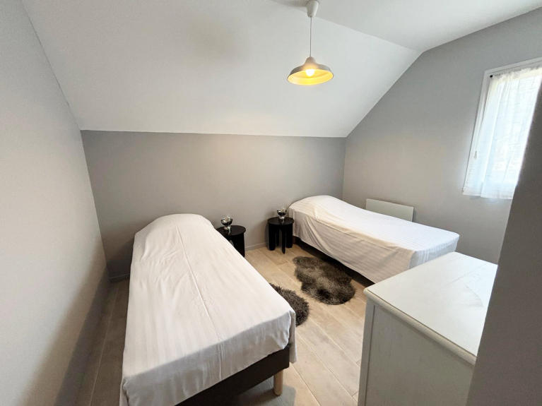 Distribuita su due livelli, la casa dispone di quattro confortevoli camere da letto: tre hanno due letti singoli ciascuna, che consentono diverse configurazioni (i letti possono essere o meno vicini), mentre la quarta ha un letto matrimoniale e un letto singolo, ideale per una coppia con un bambino.