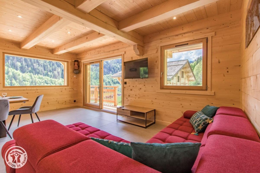 Magnifico chalet indipendente di nuova costruzione con vista sulla catena montuosa degli Aravis e sul suo punto più alto, la Pointe Percée. Situato in una frazione molto tranquilla. Orientato a sud. A 5 km dal centro del villaggio di Le Grand-Bornand. A soli 500 m dalle piste di sci di fondo, dal campo da golf e dalla fermata del bus navetta gratuito, anch'essa a 500 m.