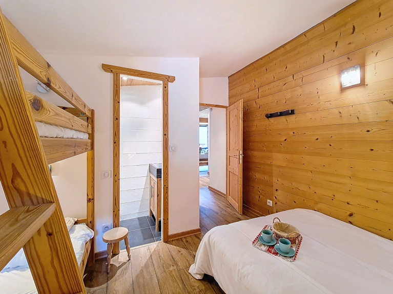 Camera da letto 2 con bagno: 1 letto matrimoniale + 2 letti a castello singoli. Bagno con doccia.