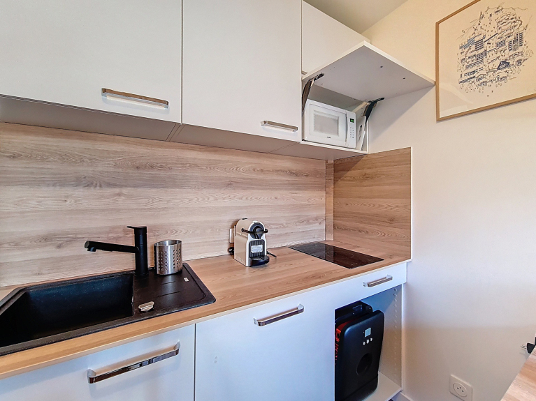Grazioso monolocale ristrutturato di 12 m² per 2 persone. Situato al piano terra con ascensore.
