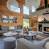 La zona giorno è inondata di luce grazie a numerose finestre e bovindi. L'area lounge è generosa e confortevole, con due grandi divani di fronte al camino e alla TV a grande schermo. Una moderna cucina completamente attrezzata con bancone si apre naturalmente sul resto della stanza.