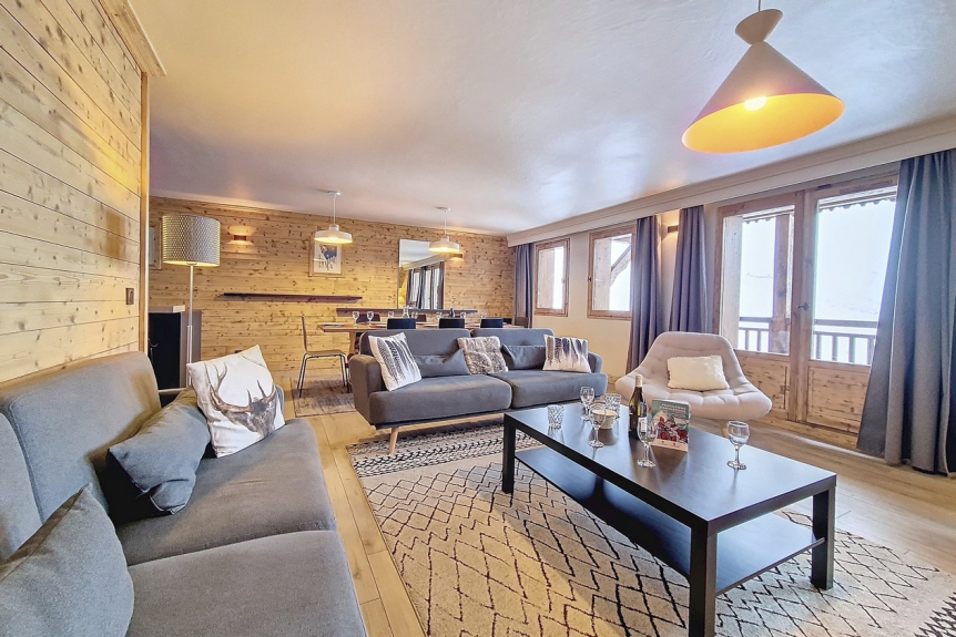 Spazioso appartamento triplex di 140 m² con balcone esposto a sud che offre un'incredibile vista sul comprensorio sciistico. L'appartamento si trova direttamente sulle piste.
