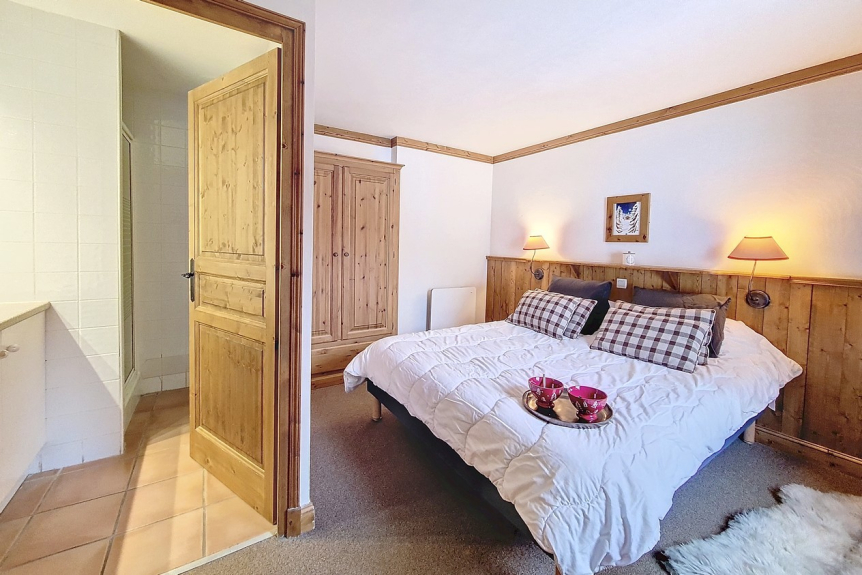 Camera da letto 1 con bagno: letto matrimoniale e bagno con doccia.