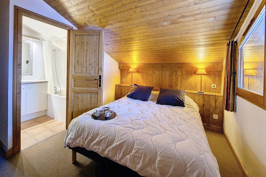 Camera da letto 5 con bagno: un letto matrimoniale. Bagno con vasca. Questa camera dispone di un balcone.