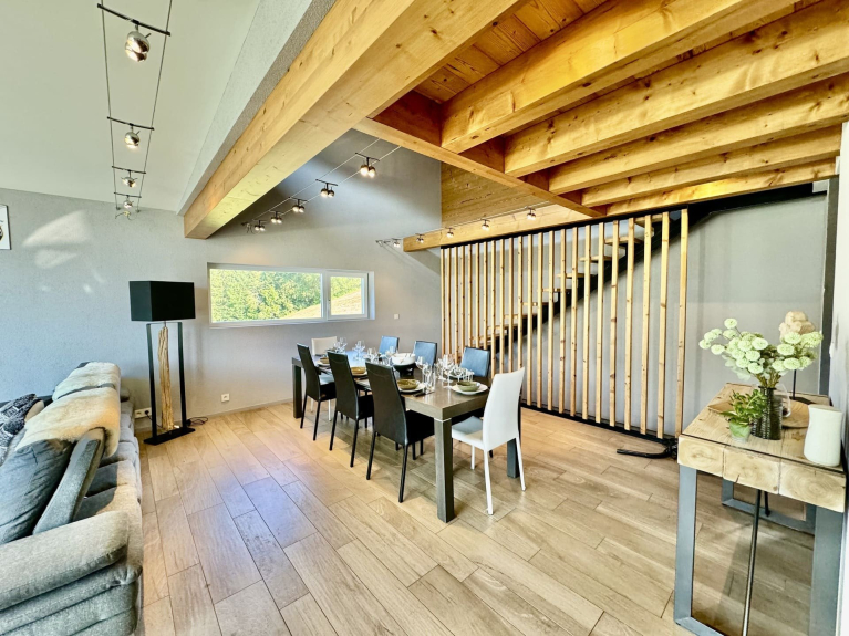 Venite a scoprire questo chalet bifamiliare progettato da un architetto in uno stile moderno e ordinato, situato in posizione ideale sulle alture del villaggio di Châtel, nel cuore del comprensorio sciistico di Portes du Soleil. La sua architettura contemporanea e le sue ampie vetrate offrono una vista panoramica eccezionale sulle montagne e sul villaggio, per una vacanza unica che unisce natura e serenità.