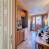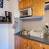 Cucina attrezzata con 2 piastre a induzione, cappa aspirante, frigorifero, forno, microonde, tostapane, bollitore e macchina da caffè.
