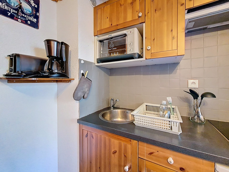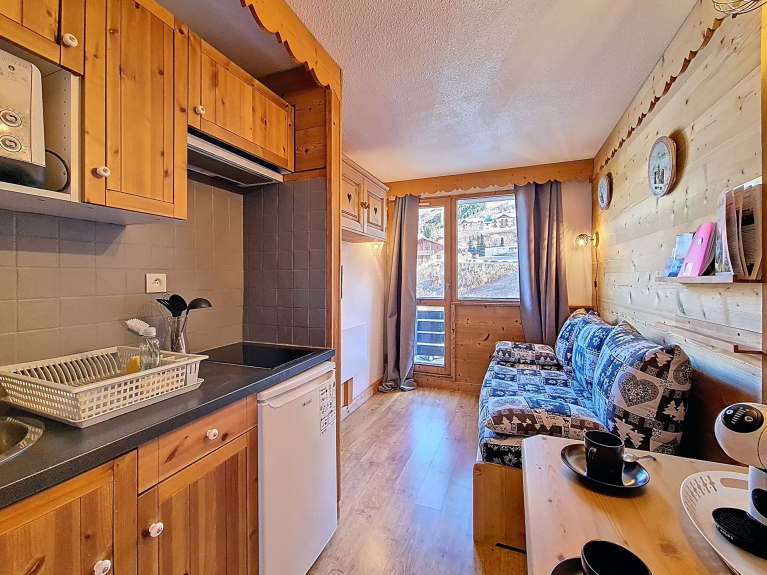 Monolocale di 17 m² con angolo montagna al 5° piano con ascensore. Ha un balcone esposto a sud-ovest con una magnifica vista su La Masse.