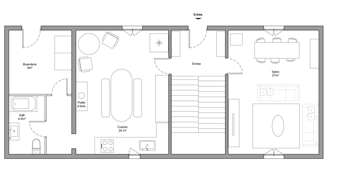 Ampio soggiorno, cucina attrezzata con stufa a legna